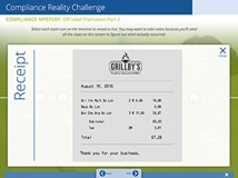Single-player games also afford a number of possibilities. Perhaps your company is concerned with the number of recent settlements involving speaker programs. Players could work their way through an unfolding speaker program scenario where they need to engage with the speaker before the program and then respond to situations that arise during the speaker’s presentation. As they respond to each situation, the game moves forward, learners see the consequences of their decisions, and important lessons are learned or reinforced.
