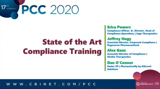 Kudos to the team at CBI/Informa for their diligent efforts to replicate the learning and networking experience of the live conference. PCC 2020 was a busy conference, with an impressive volume of content scheduled throughout the week and in the on-demand sessions. If you attended and did not have the opportunity to review the on-demand sessions, I have been told these will remain available until September 14th. You will especially want to review the State-of-the-Art Compliance Training session, where my colleague Dan O’Connor and compliance professionals from Sage Therapeutics, Regeneron, and Akebia Therapeutics share creative approaches for increasing training engagement and adoption. You don’t want to miss that one!